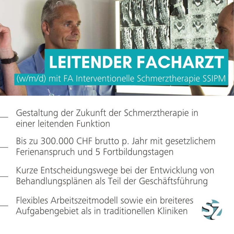 - Werden Sie Teil der erfolgreichsten privat-wirtschaftlichen Institution im Bereich Schmerztherapie in der gesamten Schweiz mit exzellenter Reputation