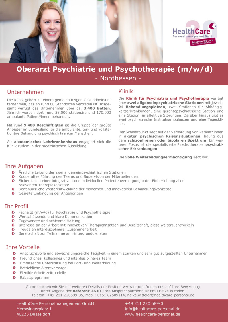 Oberarzt Psychiatrie und Psychotherapie (m/w/d)