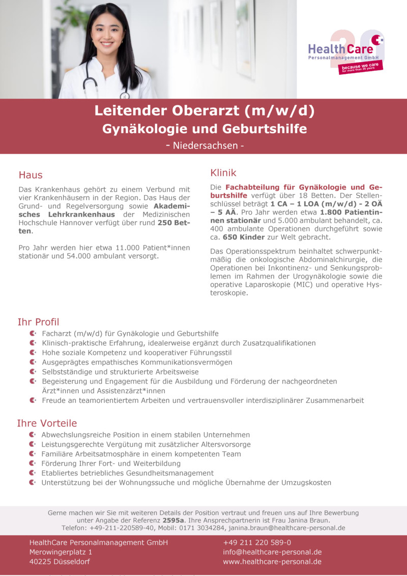 unter Angabe der Referenz 2595a. Ihre Ansprechpartnerin ist Frau Janina Braun.