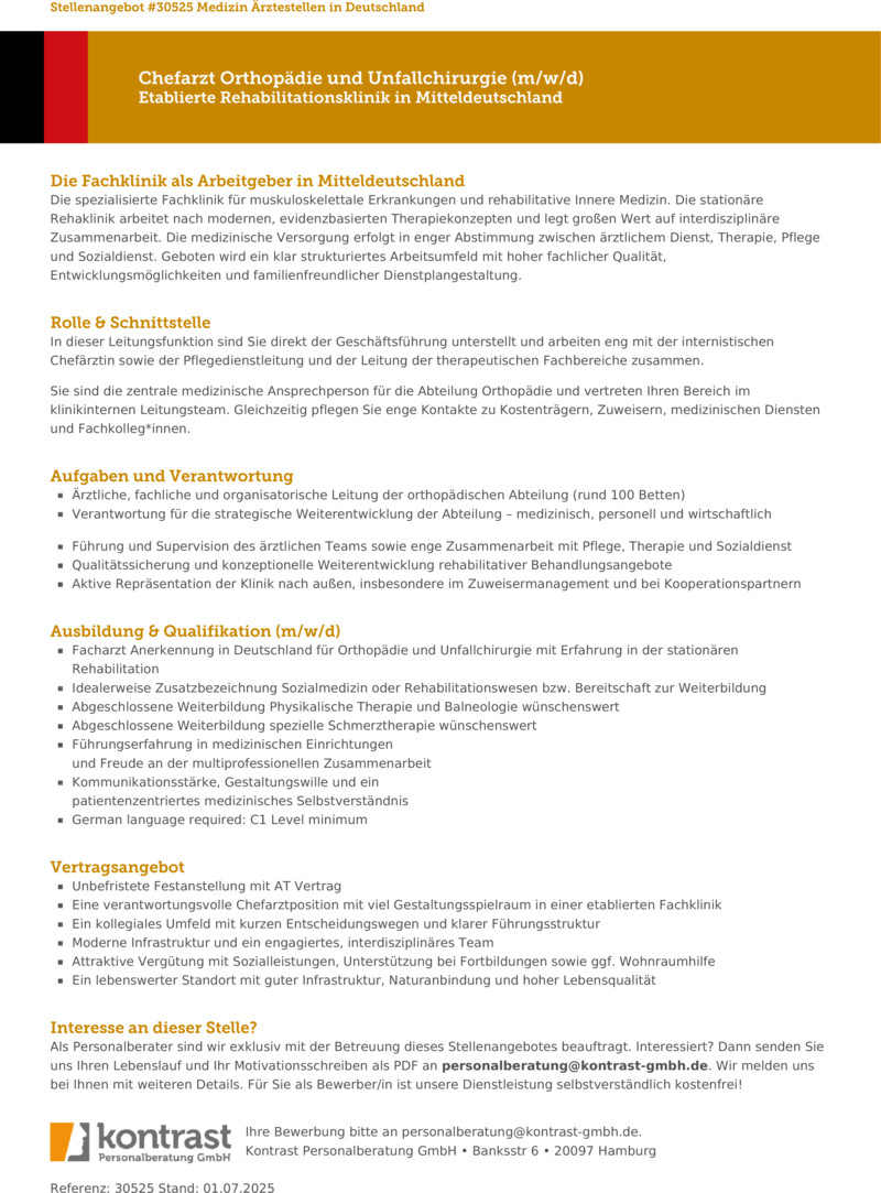 Chefarzt Orthopädie und Unfallchirurgie (m/w/d)
